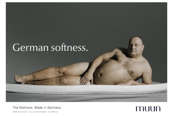 Divengleich schmiegt sich ein nackter, männlicher Körper auf eine Matratze. Wer regelmäßig durch die Hauptstadt-Clubs tingelt, erkennt ihn sicher: Der Körper gehört Frank Künster, ein sympathischer Türsteher und eine Institution im Berliner Nachtleben. Für muun zog er blank und zeigt sich nun der ganzen Stadt von seiner weichen Seite und in voller, 135-Kilo-schwerer Schönheit. Gekrönt wird Franks Körper in Großformat von dem Hashtag #germansoftness. Mit dieser Kampagne, die ab sofort Berlins Straßen ziert, wird nun auch jeder wissen, was muun ist: eine Matratze. Aber nicht nur das, erklären uns Vincent Brass und Frederic Böert, die muun Anfang 2015 gründeten – wie so häufig bei ursprünglich branchenfremden Start-ups – aus einer selbst empfundenen Marktlücke heraus, da es einfach noch kein zufriedenstellendes Produkt gab.
